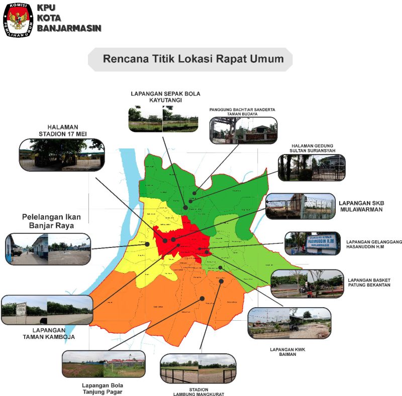 “Lokasi ini masih kita usulkan, belum bersifat final karena minta masukan dari Pemko Banjarmasin, terutama dari 5 kecamatan mengenai rencana titik lokasi kampanye,” tegas Nizam yang juga mantan Komisioner KPU Banjarmasin periode sebelumnya.