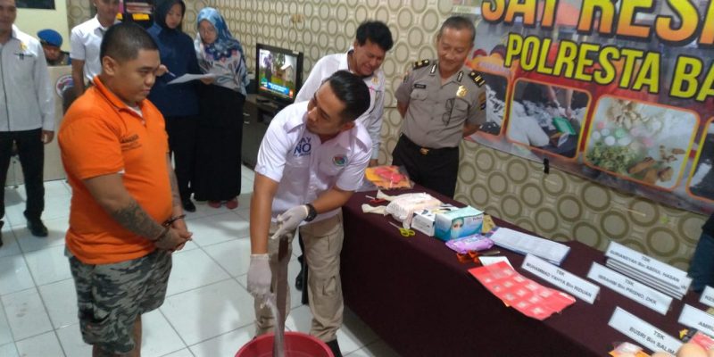 Sebelum dilakukan pemusnahan, petugas terlebih dahulu melakukan keaslian barang bukti narkoba dengan alat detecta Chem untuk mengetahui kandungan metamin.