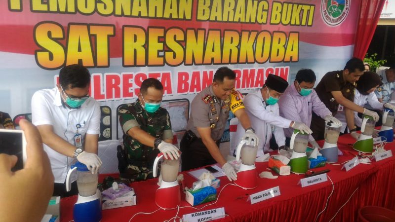 Dalam pemusnahan barang bukti narkoba dihadiri dari Pengadilan Negeri Banjarmasin, Kejaksaan Negeri Banjarmasin, Ketua BNN kota Banjarmasin dan Komandan Kodim Banjarmasin.