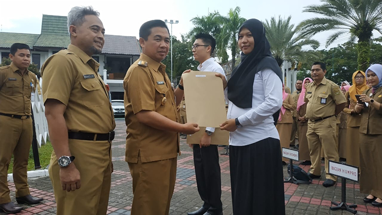 Suarindonesia – Setelah menunggu sekitar 4 bulan lamanya, akhirnya sebanyak 384 orang calon pegawai negeri sipil (CPNS) kota Banjarmasin yang lolos pada akhir tahun 2018 lalu, menerima Surat Keputusan (SK) CPNS hari ini pada apel penyerahan SK di Halaman Balai Kota Banjarmasin, Senin 8/4/2019.