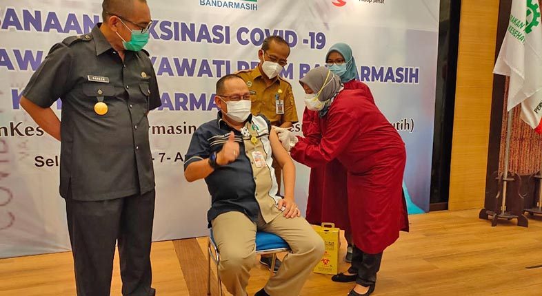 Pada kegiatan yang dibuka langsung oleh Pj Walikota Banjarmasin, Ahmad Fydayeen itu penyuntikan pertama diterima oleh Direktur Utama PDAM Bandarmasih, Ir H Yudha Ahmady dan selanjutnya direksi hingga seluruh karyawan PDAM.