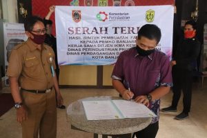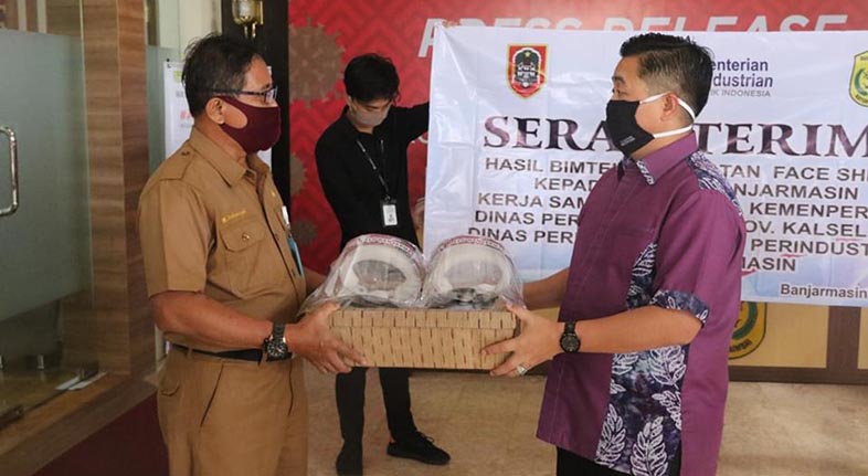 Bertempat di Lobby Balai Kota Banjarmasin, Plt Kepala Dinas Perdagangan dan Perindustrian Kota Banjarmasin H Norbiansyah menyerahkan sebanyak 400 buah Face Shield, dan diterima secara simbolis oleh Walikota Banjarmasin H Ibnu Sina, yang akan dibagikan kepada para tenaga medis dan petugas kesehatan yang berada di 52 Kampung Tangguh Banua.