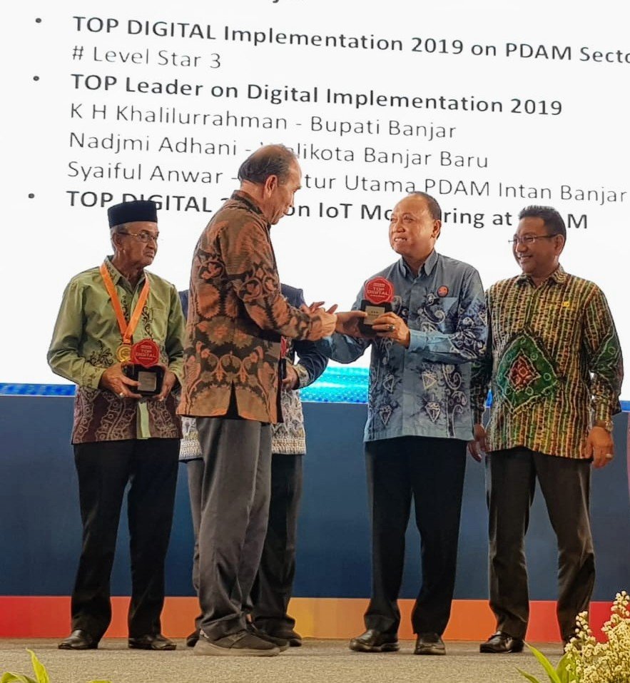 Lima penghargaan berhasil disabet, masing-masing Top Digital Implementation 2019 on PDAM Sector #Level Star 3, Top Leader on Digital Implementation 2019 diberikan kepada Bupati Banjar KH Khalilurrahman, Walikota Banjarbaru untuk H Nadjmi Adhani dan Dirut PDAM Intan Banjar Syaiful Anwar, serta Top Digital 2019 on IoT Monitoring at PDAM.