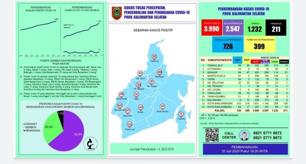 Dirawat di rumah sakit 327 dan karantina khusus atau isolasi mandiri 2.220,” ujar Juru Bicara Gugus Tugas Percepatan Penanganan Covid-19 Kalsel, HM Muslim, Jumat (10/7/2020).