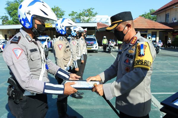 “Penghargaan ini saya berikan atas prestasi kerja mereka dalam melakukan penindakan terhadap pengguna knalpot brong, ” jelas Rachmat usai memimpin apel gelar pasukan operasi patuh intan 2021 di Halaman Mapolresta Banjarmasin.
