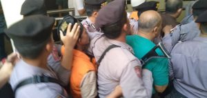 Aparat dari Samapta Polresta Banjarmasin dipimpin Kompol Sirait dan Tovo, berusaha dengan menempel dan melindungi para terdakwa menuju tahanan smenetara.