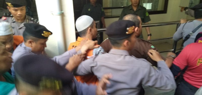 Nyaris kericuhan itu membuat terdakwa nyaris kena pukulan. Meski sudah masuk ke tahanan semetara, pihak keluarga masih teriak dan menghadang hingga petang.