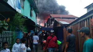 Dimana dalam peristiwa kebakaran telah menghanguskan sejumlah puluhan rumah, sehingga warga yang berusaha untuk memadamkan api cukup membesar ini kewalahan, beruntung dalam peristiwa ini tak ada menelan korban jiwa.