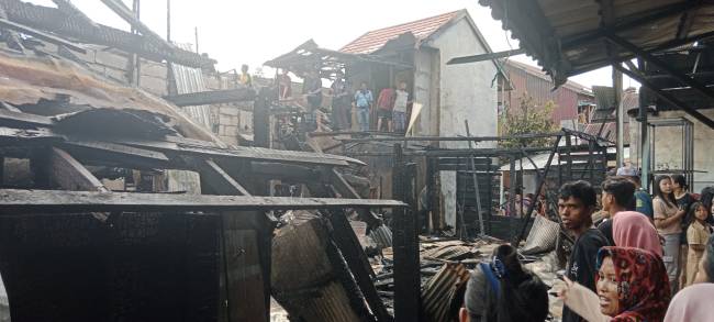 Amuk api di Jalan Aes Nasution Gang 5 Banjarmasin Tengah, gegerkan warga dan menghanguskan sebanyak 7 buah rumah. Trdampak milik Yudi, Dzikir, Asnun, Imadi, Ramidi, Mas Rani dan Usuf, Matemen.