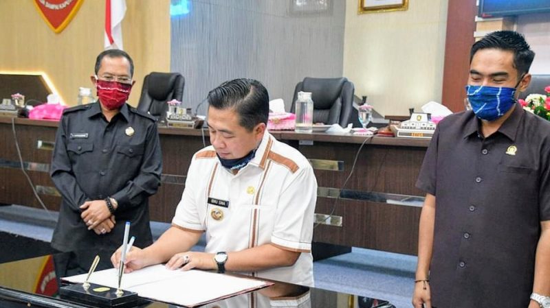 Selain menyampaikan LKPj 2019, H Ibnu Sina juga menandatangani Kesepakatan untuk Dilakukannya Perubahan Peraturan Daerah Tentang Rencana Tata Ruang Wilayah (RTRW) yang disaksikan Wakil Walikota Banjarmasin H Hermansyah. (SU)
