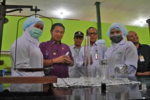 Bertempat di Laboratorium SMK ISFI Banjarmasin, proses pembuatan hand sanitizer tersebut, disaksikan langsung oleh Walikota Banjarmasin H Ibnu Sina bersama Kepala Dinas Kesehatan Kota Banjarmasin Machli Riyadi, Rabu (18/03).