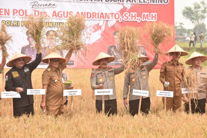 Di 17 Kecamatan Kabupaten Banjar, Wakapolri memimpin langsung panen dan tanam padi sebagai bagian dari Gerakan Nasional untuk mengurangi dampak yang mungkin terjadi akibat kondisi cuaca ekstrem yang disebabkan oleh fenomena El Nino, Selasa (3/10/2023).
