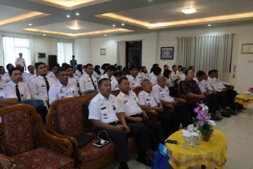 Para Pimpinan Tinggi Pratama dan seluruh Pejabat Administrator serta Pengawas, Jabatan Fungsional Tertentu dan Jabatan Fungsional Umum dil lingkungan Kantor Wilayah Kemenkumham Kalsel bertempat di Aula turut menyaksikan Apel Deklarasi Janji Kinerja Tahun 2019 yang disiarkan di seluruh kantor wilayah dan unit pelaksana teknis se-Indonesia secara langsung menggunakan teleconference dan aplikasi zoom.