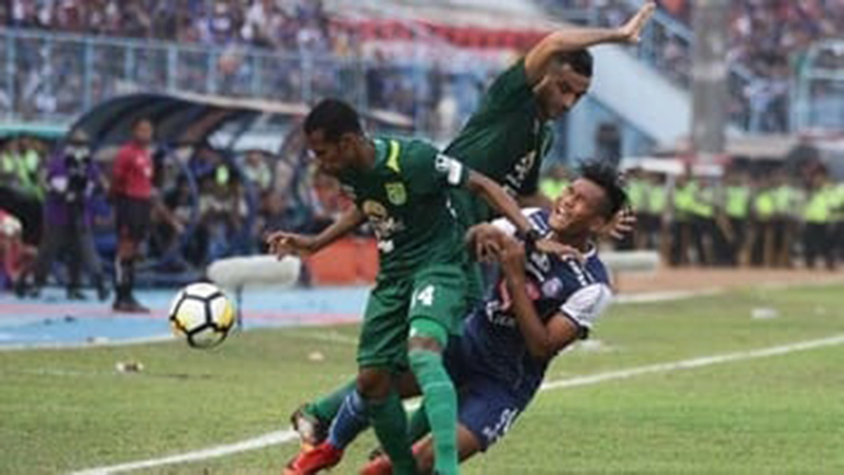 Laga baru berjalan delapan menit puluhan ribu Bonek di Stadion GBT bergemuruh setelah Irfan Jaya mencetak gol indah. Setelah menerima umpan lambung Otavio Dutra, Irfan Jaya berhasil mengecoh Alfin Tuasalamony di sisi kanan kotak penalti Arema. Lewat tendangan kaki kiri Irfan Jaya menaruh bola ke pojok kanan gawang tanpa mampu diantisipasi kiper Kurniawan Kartika Ajie.