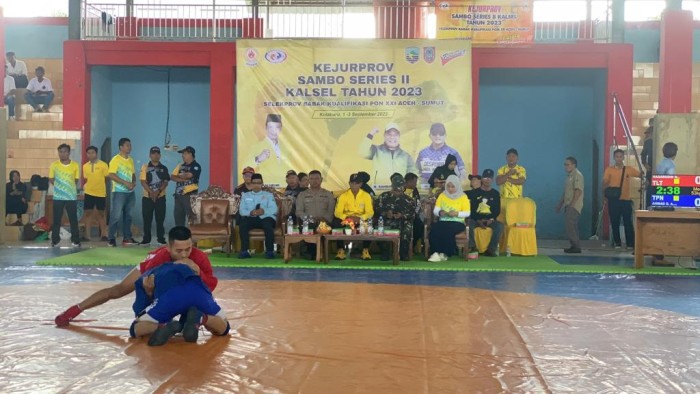 SuarIndonesia – Sebanyak 170 peserta dari 9 Kabupaten/Kota se-Kalsel mengikuti Kejurprov Sambo Series II Kalsel Tahun 2023, yang diselenggarakan di GOR Indoor Kotabaru, dari 1 – 3 September 2023.
