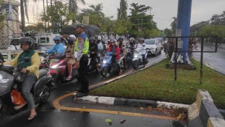 Sementara itu, pohon tumbang di Jalan Belitung Darat menyebabkan separuh jalan tertutup dedaunan dan ranting dengan ukuran cukup besar.