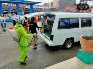 Petugas juga melakukan penyemrotan disenfektan terhadap angkutan umum yang saat itu mangkal di kawasan terminal.