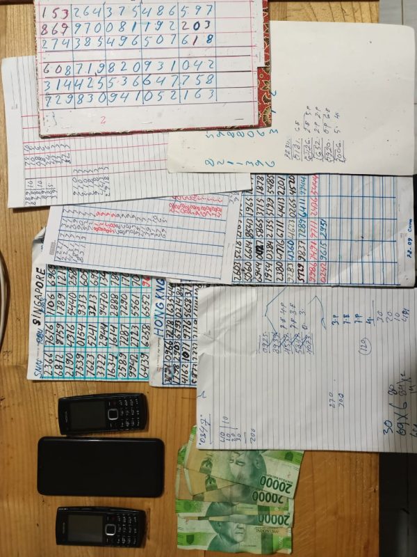 Selain kedua pelaku, petugas juga menyita barang bukti berupa 8 kertas berisikan grafik angka, Handphone, dan uang Rp 120 ribu.