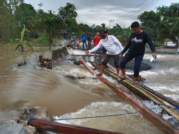 “Hari ini Minggu (5/9/2021) pengerjaan jembatan sudah mulai dilakukan, agar air tidak menyebrang jalan, kita akan buatkan tanggul dan drainase, agar bisa dilakukan penghamparan pengerasan jalan agar bisa dilewati warga,” ujarnya