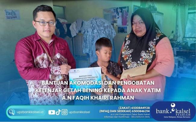 SuarIndonesia – Bank Kalsel memberikan bantuan pengobatan Faqih Khairi Rahman, anak yang berusia 10 tahun, yang kini sedang menderita Kanker Kelenjar Getah Bening.