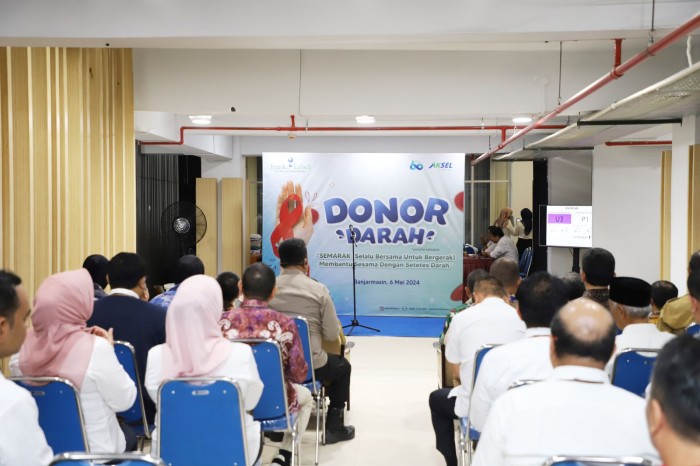 Mengambil momentum Hari Jadi Bank Kalsel ke-60 tahun, Bank Kalsel menggelar kegiatan donor darah dengan tema “Selalu Bersama Untuk Bergerak (SEMARAK), Membantu Sesama dengan Setetes Darah”, Senin (6/5/2024) di basemen Kantor Pusat Bank Kalsel di Banjarmasin.