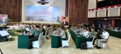 Rakor Khusus Peingkatan Penanggulangan karhutla selain dihadiri pimpinan lembaga terkait tingkat pusat juga dihadiri Pangdam VI Tanjungpura, Mayjen TNI Iwan Setiawan, SE, MM, Kapolda Kalsel, Irjen Pol Andi Rian Djajadi dan Danrem 101 Ant – Brigjen TNI Ari Aryanto. (*/ZI)