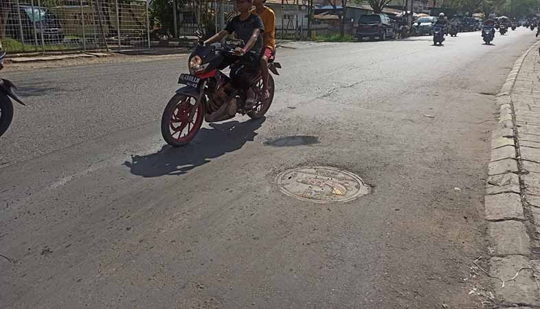 Pasalnya, di salah satu sisi jalan tersebut, terdapat gundukan yang muncul akibat amblasnya aspal bekas bongkaran instalasi Perusahaan Umum Daerah (Perumda) Pengelolaan Air Limbah Daerah (PALD) yang dikerjakan oleh Balai Cipta Karya.