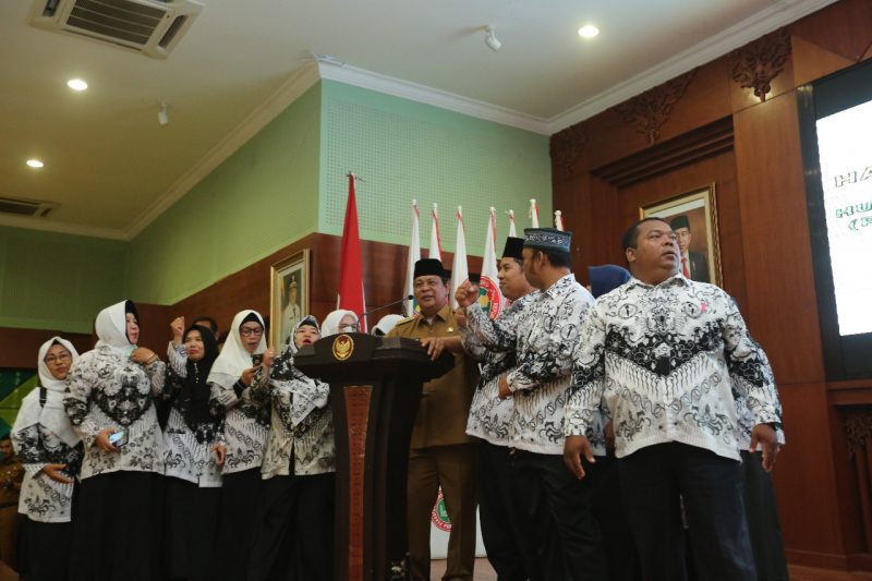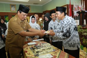 SuarIndonesia – Mengakhiri sambutan pada peringatan HUT ke 74 di Gedung Idham Chalid, Gubernur Kalsel, H Sahbirin Noor, meminta empat orang guru perempuan dan empat guru pria untuk maju ke depan.