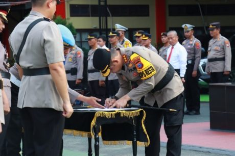 Serah terima jabatan dipimpin Kapolresta Banjarmasin Kombes Pol Sabana Atmojo.