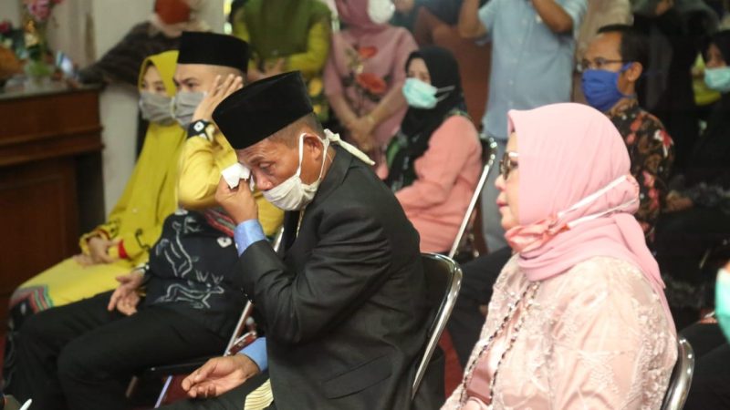 SuarIndonesia – Bupati Tanah Laut Drs H Sukamta tak bisa membendung air matanya. Dengan didampingi istrinya orang nomor satu di Kabupaten Tala tersebut, sesekali tak bisa melihat rasa bahagia dan haru dan sedihnya.