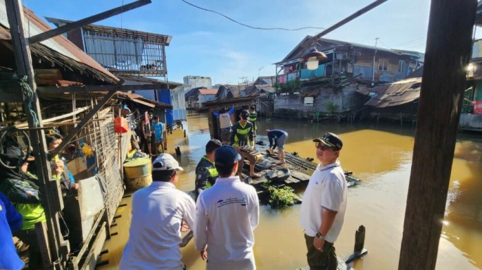 Wali Kota Banjarmasin H Ibnu Sina, didampingi Kepala Perumda PALD Ir Endang Waryono, Ketua Forum Kota Sehat Banjarmasin Fathurrahman beserta jajaran SKPD melaksanakan giat bersih-bersih Sungai dan Masjid yang ada di sekitar Muara Kelayan, Kelayan Barat, Kecamatan Banjarmasin Selatan, pada Jumat (26/4/2024).