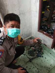 Dari keterangan saksi pertama kali melihat Ferry (42), saat mendobrak pintu rumah itu, mendapati botol berisi bahan bakar yang jatuh dari plafon teras rumah.