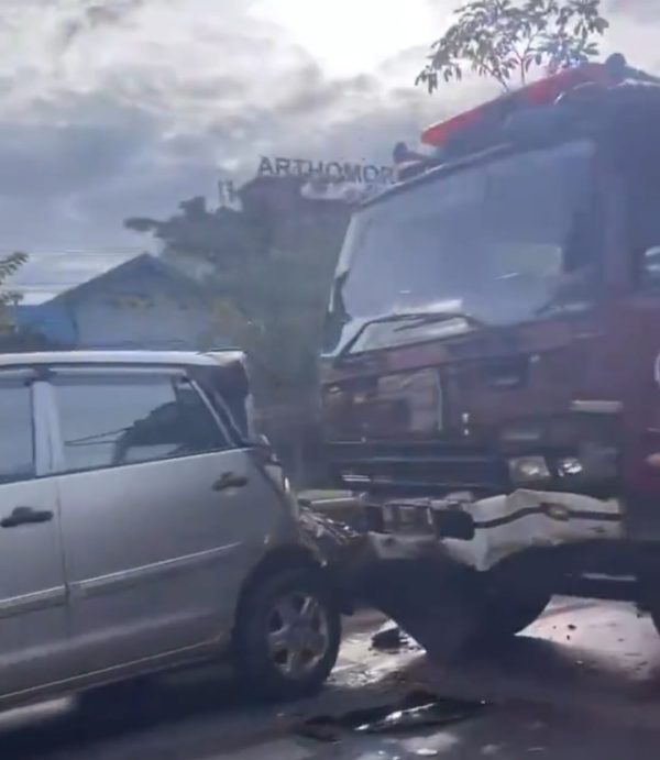 Ini unit armada jenis truk Pemadam Kebakaran dari Dinas Pemadam Kebakaran dan Penyelamatan (DPKP) Banjarmasin, hantam 5 buah mobil lain, saat itu tengah berhenti di rambu lampu lalu lintas.