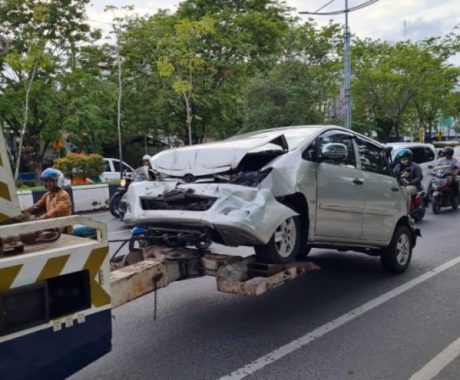 Terkait kecelakaan beruntun, beberapa mobil langsung diderek oleh Dinas Perhubungan Banjarmasin.