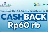 SuarIndonesia – Guna menyambut Harjadi Bank Kalsel ke-61 Bank Kalsel, kini disediakan cashback 61 persen dan 61 voucher belanja senilai Rp500 ribu.’ Bagi nasabah…