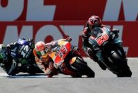 Marc Marquez dikepung Yamaha pada balapan MotoGP Belanda 2019. (REUTERS/Piroschka Van De Wouw) Suarindonesia – Pebalap Yamaha Maverick Vinales menang MotoGP Belanda 2019 dengan mengalahkan Marc Marquez pada balapan di…