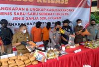 SuarIndonesia – Pecahkan rekor pengungkapan dilakukan jajaran Sat Reznarkoba Polresta Banjarmasin dengan 135,02 Kg sabu dan 528, 67 ganja. Kasusnya digelar, Selasa (15/6/2021) pagi…