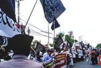 Suarindonesia — Ratusan orang massa membawa bendera bertuliskan kalimat tauhiddan menggelar aksi di depan Markas Kepolisian Daerah Jawa Timur (Mapolda Jatim). Aksi ini mereka lakukan untuk mendampingi…