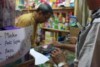 SuarIndonesia – Tulisan ‘masker, anti septik, antis, dan detol kosong’ terpajang di depan kios Apotek Arif, Pasar Baru Permai lantai II, Banjarmasin, Selasa (4/3/2020)….