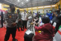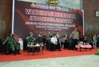 SuarIndonesia -Presiden RI Joko Widodo dan Kapolri Jenderal Polisi Listyo Sigit Prabowo dan Panglima TNI Marsekal TNI Hadi Tjahjanto, langsung menyaksikan vaksinasi serentak, dengan…