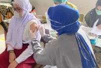 Naura Azzahra Rinaldy, salah satu murid kelas V di SDN 2 Guntung Paikat Banjarbaru ketika mengikuti vaksinasi Covid-19 SuarIndonesia – Pemerintah Provinsi Kalimantan Selatan…