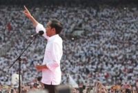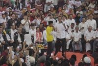 Capres nomor 01 Joko Widodo saat melakukan orasi dalam Konser Putih Bersatu dalam rangka Kampanye Akbar pasangan capres no urut 01 di Gelora Bung…
