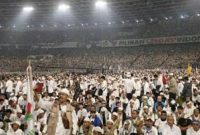 Pentolan FPI Rizieq Shihab direncanakan akan menyapa pendukung Prabowo-Sandi dalam kampanye akbar Prabowo di GBK, Jakarta, Minggu (7/4). REUTERS/Beawiharta Suarindonesia – Rekaman video Imam…
