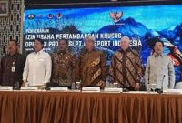 Penyerahan IUPK OP kepada PT Freeport Indonesia oleh Dirjen Mineral dan Batubara Kementerian ESDM Bambang Gatot Ariyono kepada Direktur Utama PT Freeport Indonesia Tony…