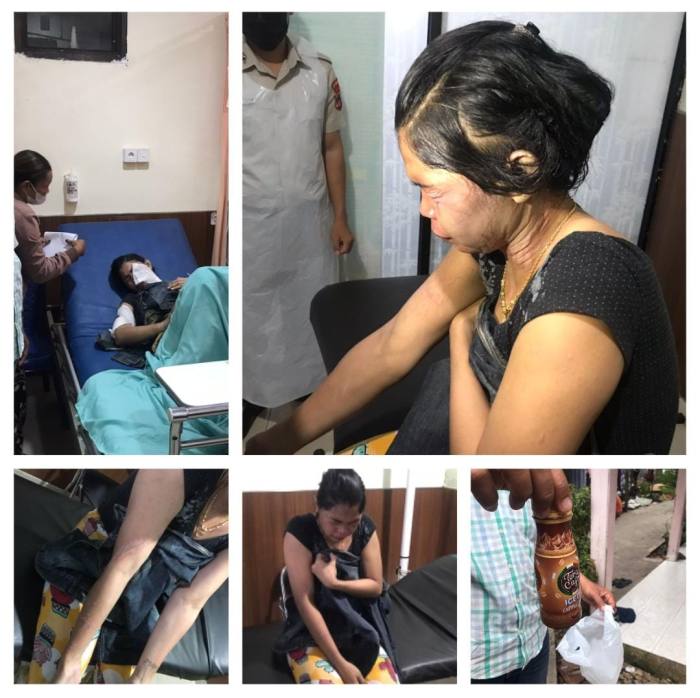 Pelaku yang diduga terbakar cemburu lantas menyiramkan air keras yang dibawanya ke wajah korban. Akibatnya wajah korban melepuh dan mengeluarkan asap.