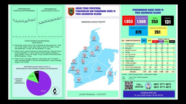 PDP berjumlah 261 dan ODP berjumlah 879 orang,” kata Juru Bicara Gugus Tugas Percepatan Penanganan Covid-19 Kalsel, HM Muslim, Senin (15/6/2020).