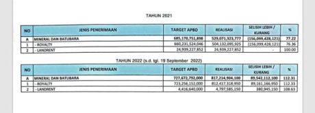 Dia menyebut, penerimaan royalti minerba tahun ini sudah melebihi target APBD yang hanya Rp 727.672.792.000.