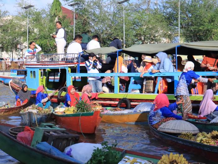 Para tamu undangan baik dari IDI Pusat maupun Daerah sedari pagi sudah disambut dan diajak oleh Ketua Dekranasda Kota Banjarmasin, Hj Siti Wasilah beserta rombongan untuk menikmati pemandangan Kampung Hijau dan Kampung Biru sembari menyusuri sungai Martapura melalui dermaga Sungai Jingah.