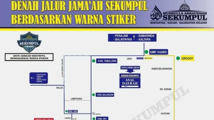 Stiker dibagi 3 warna, setiap warna akan menunjukkan asal daerah jemaah se-Kalimantan.