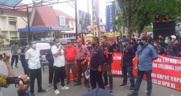SuarIndonesia – Segera usut sindikat IUP diduga bodong, dan massa dari KAKI Kalsel “ngeluruk” (berdatangan,red) ke Polda Kalsel, di Jalan DI Pandjaitan Banjarmasin Tengah, Kamis (24/6/2021).
